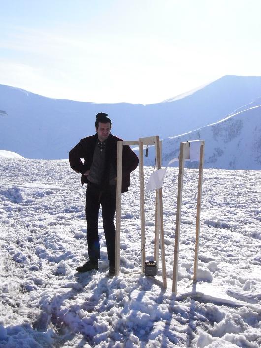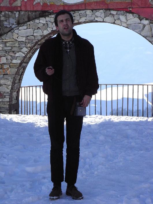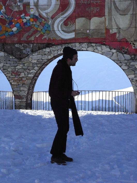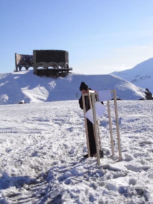 Interpretation2 of Zak Prekop's "Nighttime Reader" by Mikaël D. Brkić. Cheerleader Sculpture by Mikaël D. Brkić, Egija Inzule, and Tobias Kaspar, Gudauri, December 5, 2009