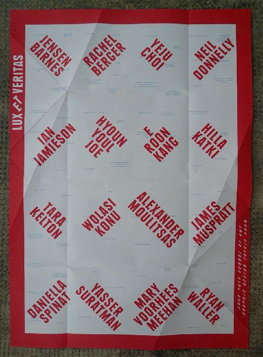 Founded in 1701, Yale University is located in New Haven, Connecticut. Its School of Art, created in 1869, was the first connected with an institution of higher learning in the US. Since 1869, critics within the Graphic Design program have included Paul Rand, Alexey Brodovitch, Herbert Matter, and Bradbury Thompson. The 2009 Graphic Design MFA candidates’ critics included Michael Bierut, Julia Born, Matthew Carter, Glen Cummings, Linda van Deursen, Paul Elliman, Tobias Frere-Jones, Jessica Helfand, Karel Martens, Dan Michaelson, Michael Rock, Susan Sellers, Daniel van der Velden, Roel Wouters, and the Graphic Design Department’s Director Sheila Levrant de Bretteville.