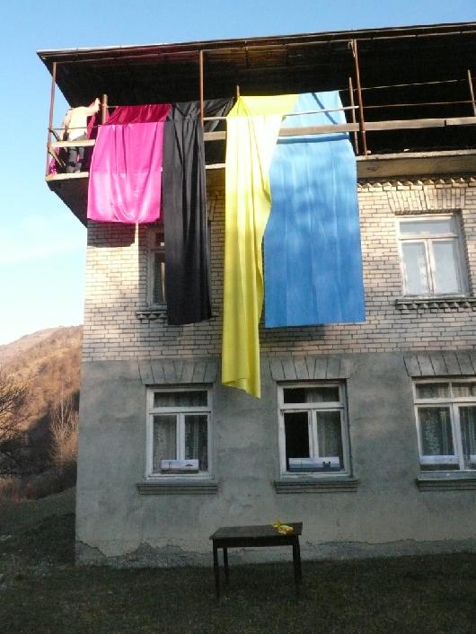 Fabrics for a house in Bakhani by Kerstin Brätsch and Tobias Madison, December 5, 2009 / Pictures by Rezo Glonti and Ani Chorgolashvili showing abandoned structures for leisure in Batumi (Black Sea) / A selection of Lux et Veritas, Yale University School of Art Graphic Design Department – 2009 MFA Thesis Show / A performance by Ei Arakawa and Sergei Tcherepnin