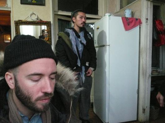 Curator Egija Inzule (with hat), Tobias Kaspar (artist), Sergei Tcherepnin (composer) and Giorgi Shanidze (artist)