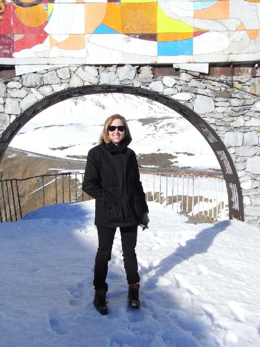 Art historian Nana Kipiani with the mother of the owner of Neri Dari Hostel