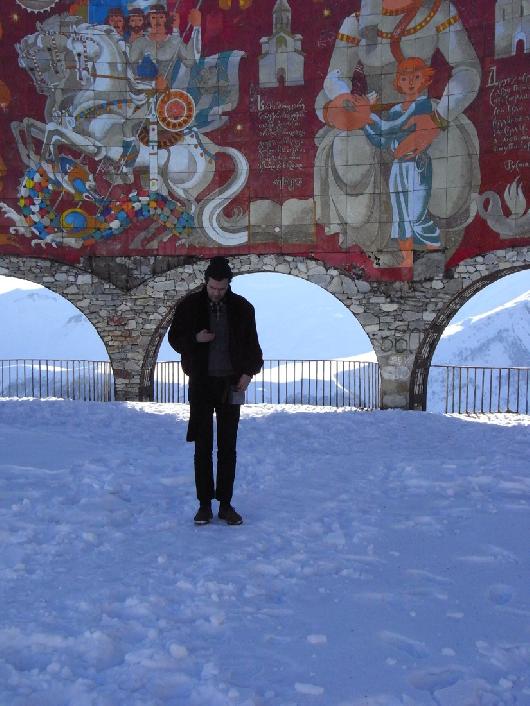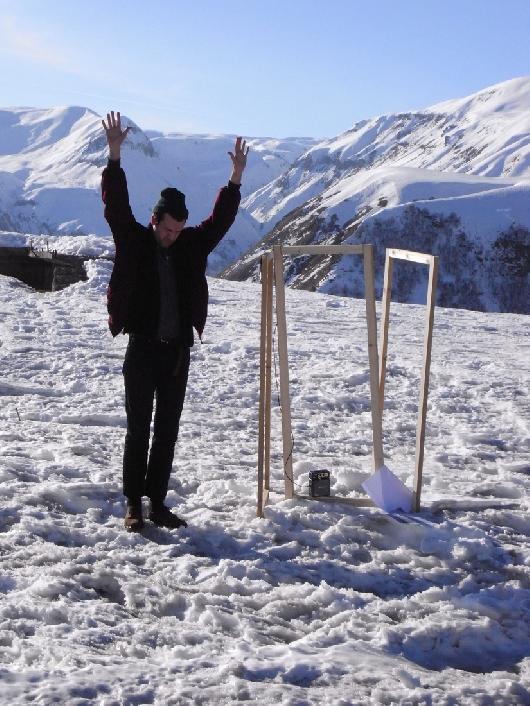 Interpretation2 of Zak Prekop's "Nighttime Reader" by Mikaël D. Brkić. Cheerleader Sculpture by Mikaël D. Brkić, Egija Inzule, and Tobias Kaspar, Gudauri, December 5, 2009