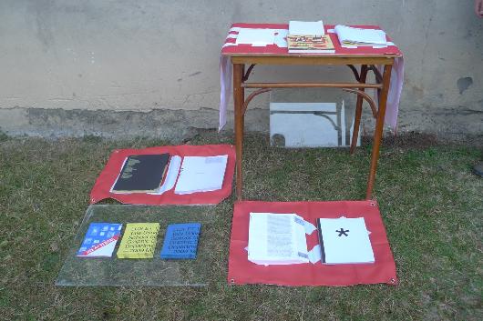 Fabrics for a house in Bakhani by Kerstin Brätsch and Tobias Madison, December 5, 2009 / Pictures by Rezo Glonti and Ani Chorgolashvili showing abandoned structures for leisure in Batumi (Black Sea) / A selection of Lux et Veritas, Yale University School of Art Graphic Design Department – 2009 MFA Thesis Show / A performance by Ei Arakawa and Sergei Tcherepnin